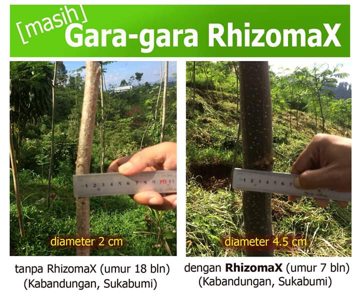 Perbedaan diameter batang dengan atau tanpa Rhizomax